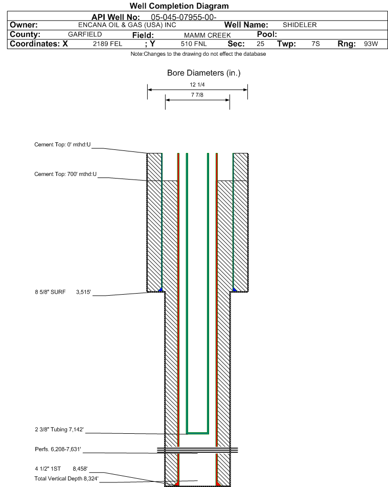 | | Perforation Data: | | Interval Top: | 6208 ft. | # Of Holes: | 82 | | Interval Bottom: | 7631 ft. | Hole Size: | |