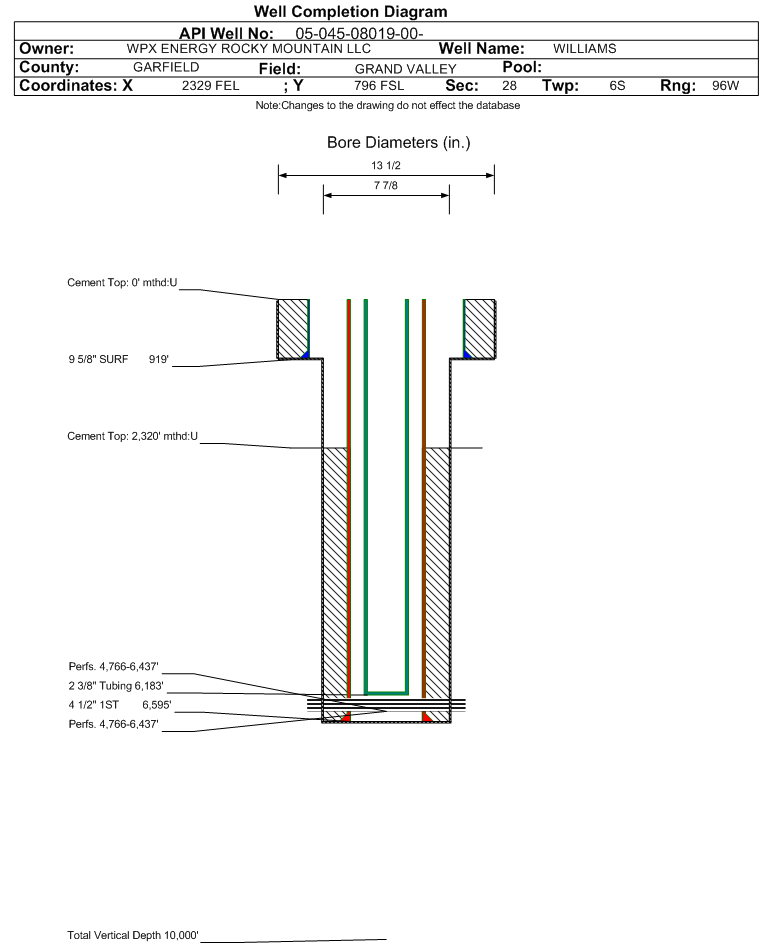 | | Perforation Data: | | Interval Top: | 4766 ft. | # Of Holes: | 75 | | Interval Bottom: | 6437 ft. | Hole Size: | |