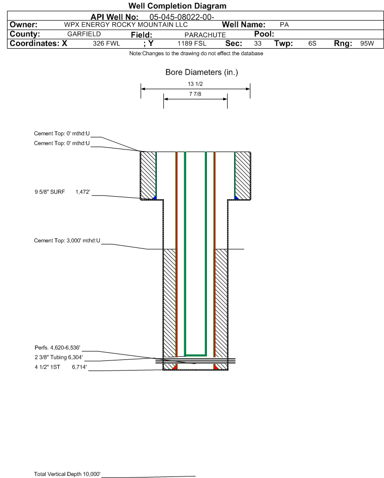 County:GARFIELD #045Location:SWSW 33 6S95W 6