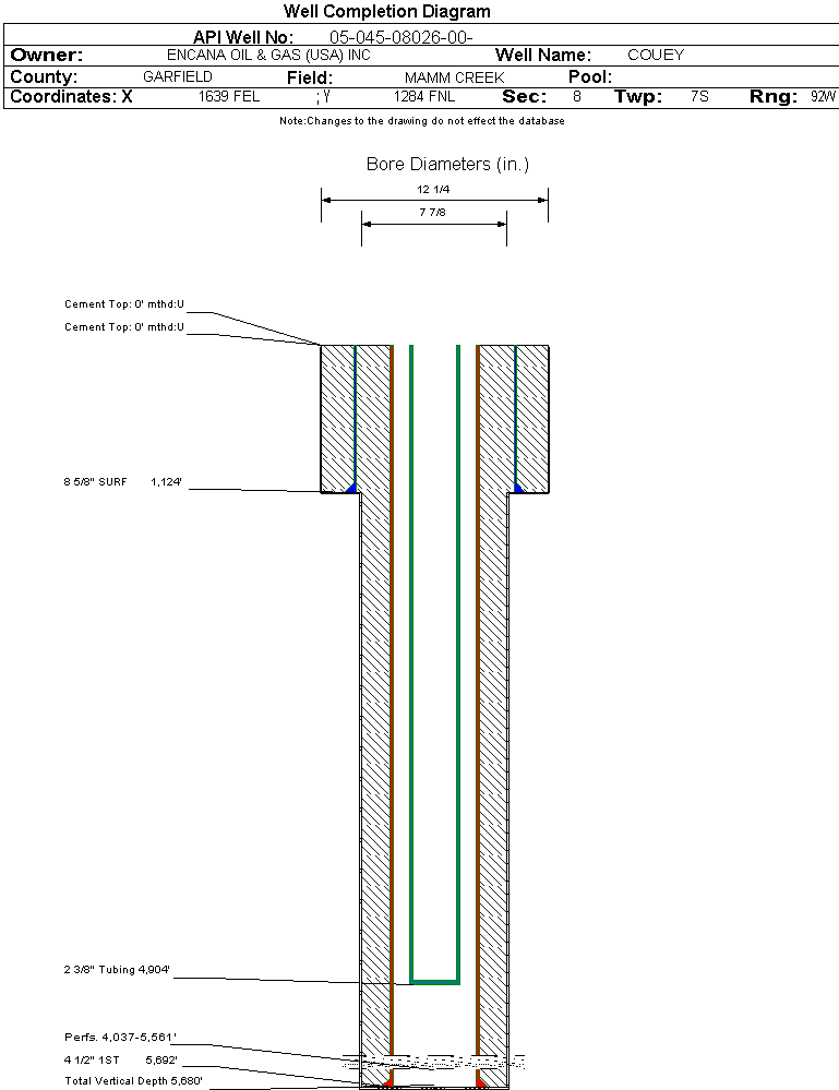 | | Perforation Data: | | Interval Top: | 4037 ft. | # Of Holes: | 74 | | Interval Bottom: | 5561 ft. | Hole Size: | 0.34 in. |