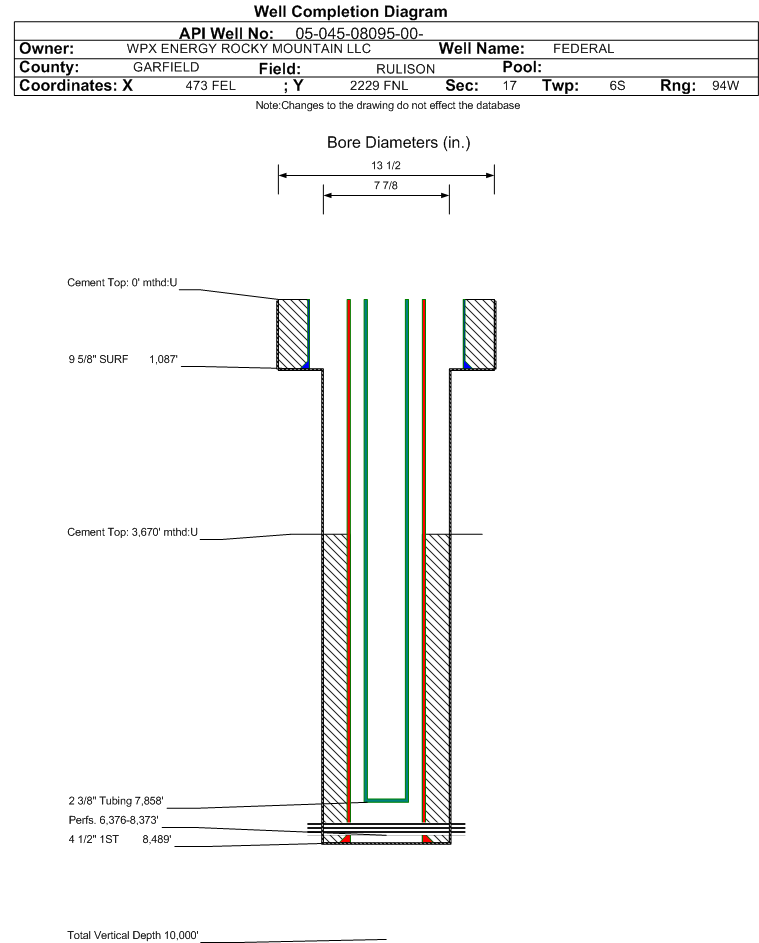 | | Perforation Data: | | Interval Top: | 6376 ft. | # Of Holes: | 80 | | Interval Bottom: | 8373 ft. | Hole Size: | |