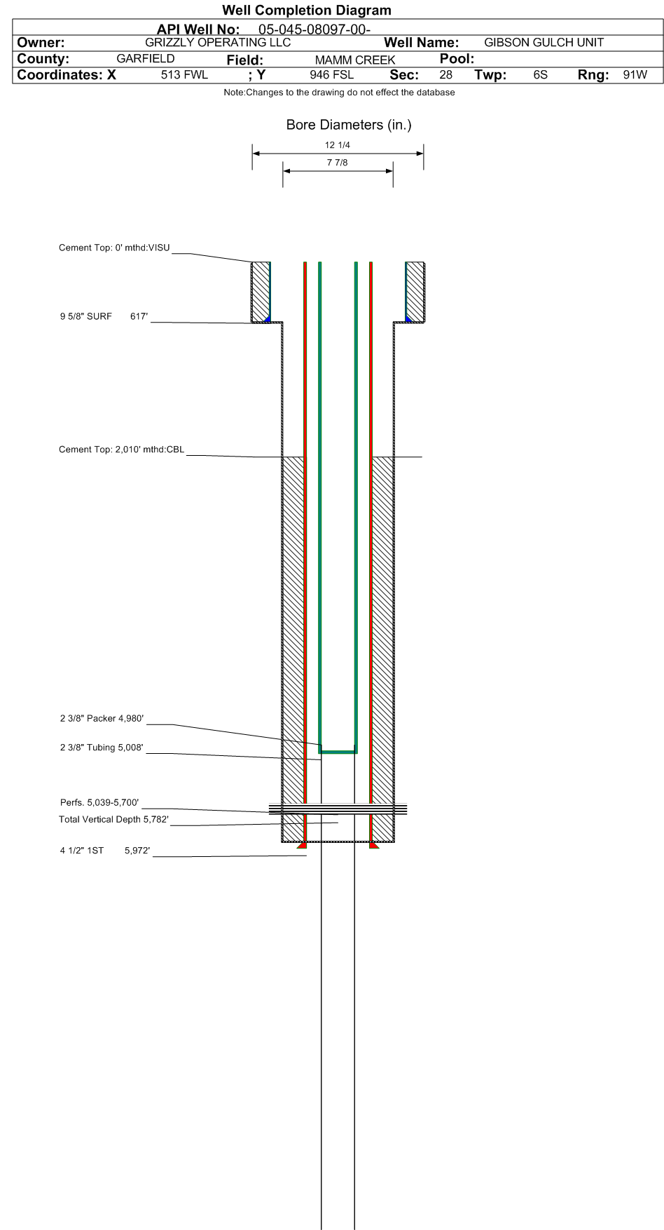Wellbore #00 Wellbore Classification: GW Status: PA - 12/5/2019 Measured TD: 5972 ft. Vertical TD: 5782 ft.| Wellbore Data for Original Wellbore | Wellbore Classification: GW PA - 12/5/2019 | | Wellbore Permit | DIRECTIONAL | | Permit #: | 20020566 | Expiration Date: | 3/19/2003 | | Proposed Top PZ Location: | Sec:33 Twp: 6S 91W | Footage: 150 FNL 513 FWL | | Bottom Hole Location: | Sec:33 Twp: 6S 91W | Footage: 150 FNL 513 FWL | | Proposed Depth/Form: | 5700 ft. | | Surface Mineral Owner Same: | Yes | | Mineral Owner: | FEDERAL | Surface Owner: | FEDERAL | | Unit: | GIBSON GULTCH | Unit Number: | | | Formation And Spacing: | Code: WMFK , Formation: WILLIAMS FORK , Order: , Unit Acreage: , Drill Unit: |