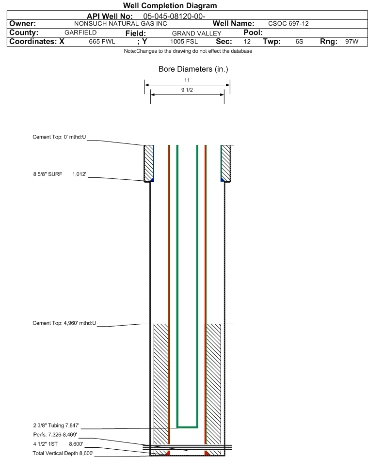 | | Perforation Data: | | Interval Top: | 7326 ft. | # Of Holes: | | | Interval Bottom: | 8469 ft. | Hole Size: | |