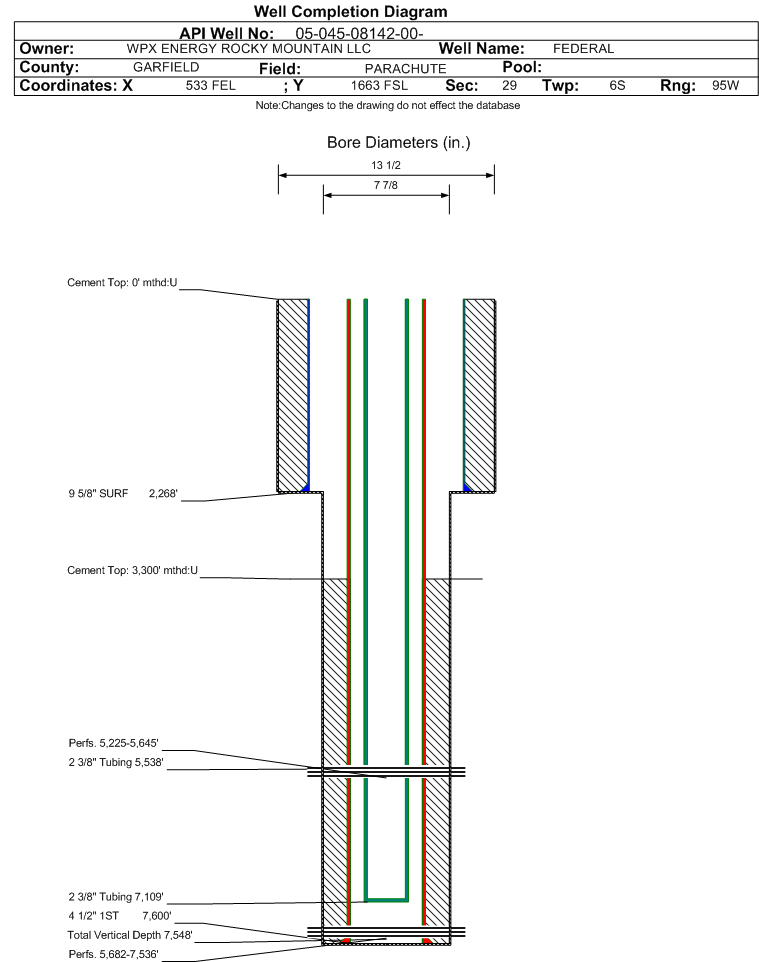 | | Perforation Data: | | Interval Top: | 5682 ft. | # Of Holes: | 87 | | Interval Bottom: | 7536 ft. | Hole Size: | |
