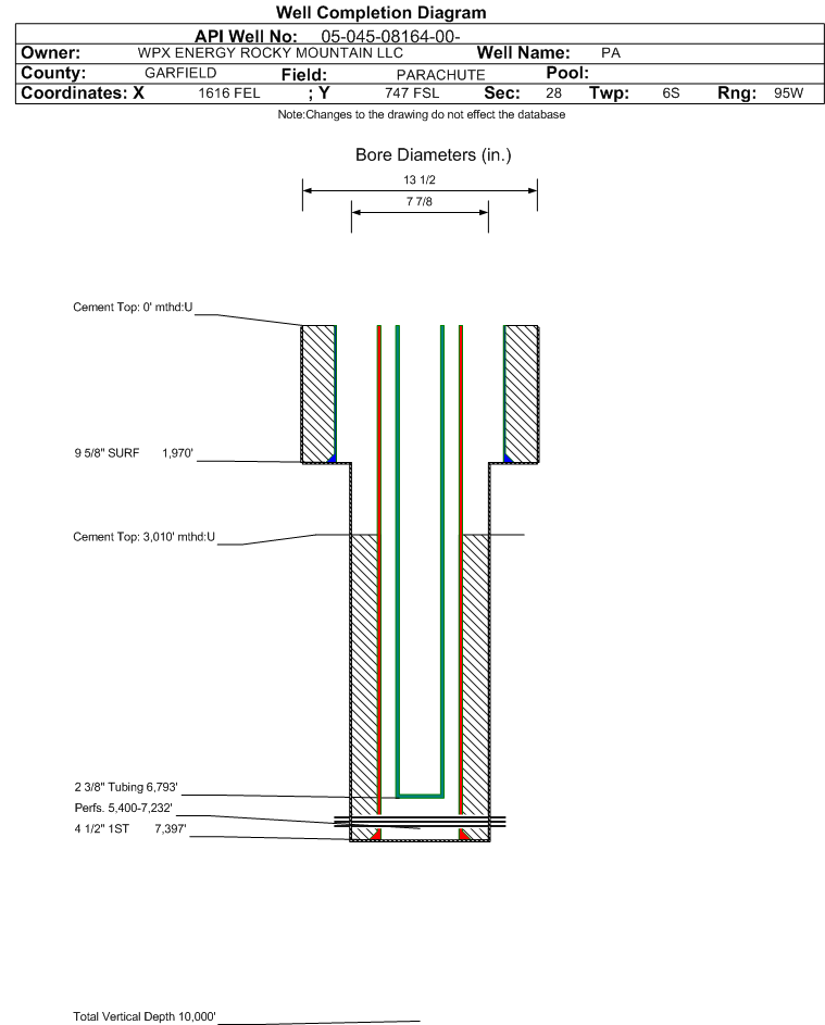 | | Perforation Data: | | Interval Top: | 5400 ft. | # Of Holes: | 79 | | Interval Bottom: | 7232 ft. | Hole Size: | |