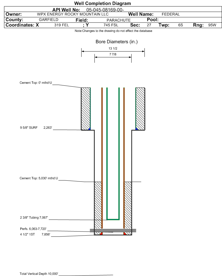 | | Perforation Data: | | Interval Top: | 6063 ft. | # Of Holes: | 71 | | Interval Bottom: | 7720 ft. | Hole Size: | |