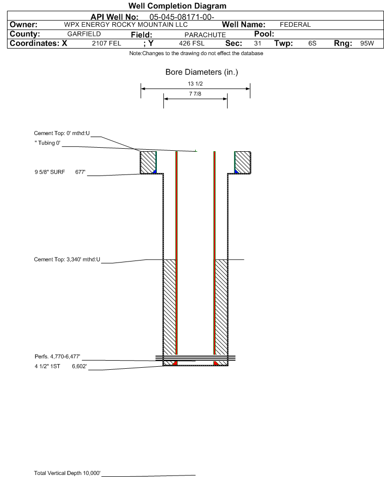| | Perforation Data: | | Interval Top: | 4770 ft. | # Of Holes: | 76 | | Interval Bottom: | 6477 ft. | Hole Size: | |