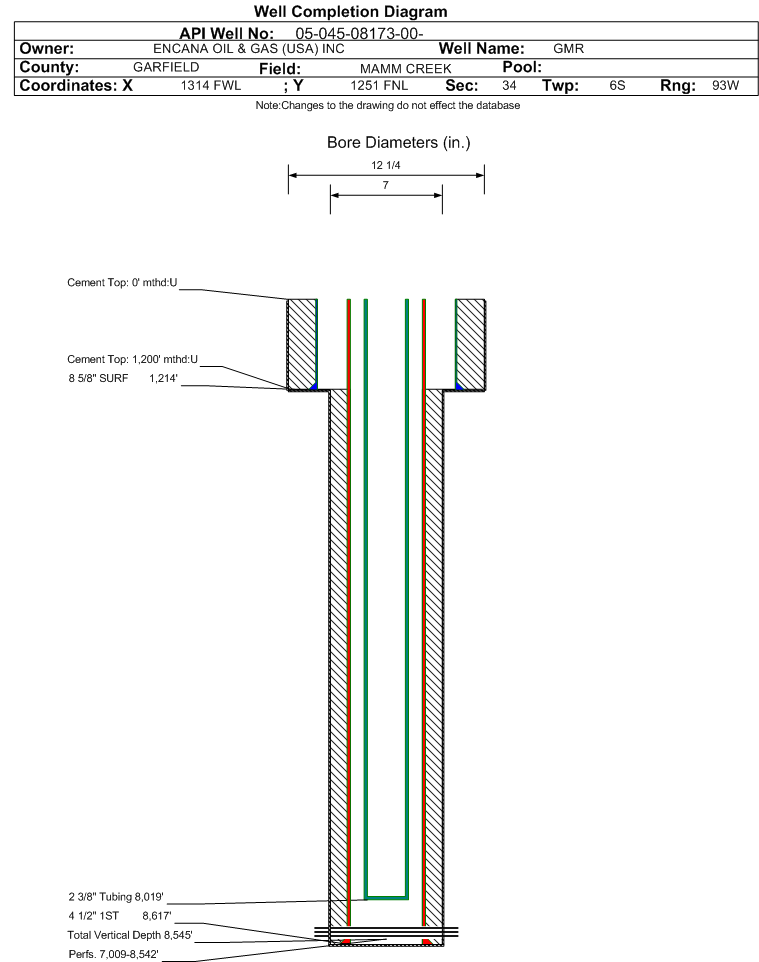 | | Perforation Data: | | Interval Top: | 7009 ft. | # Of Holes: | 78 | | Interval Bottom: | 8542 ft. | Hole Size: | |