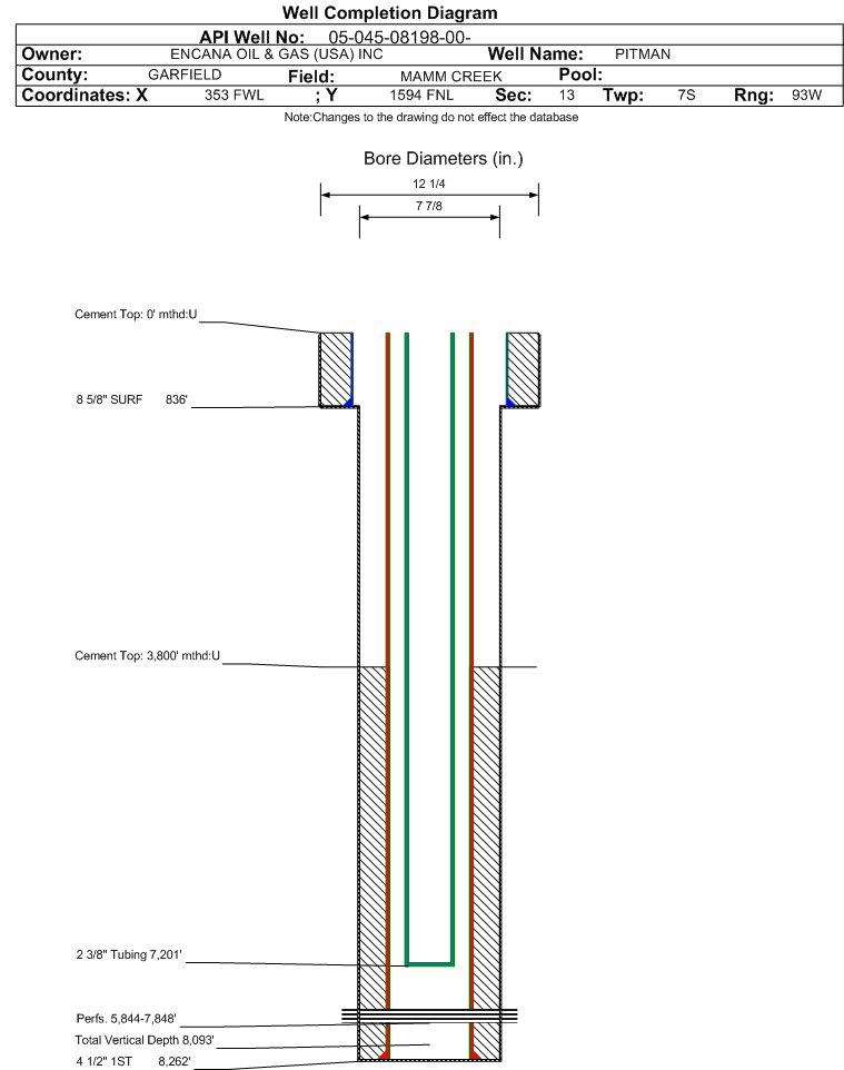 | | Perforation Data: | | Interval Top: | 5844 ft. | # Of Holes: | 112 | | Interval Bottom: | 7848 ft. | Hole Size: | |