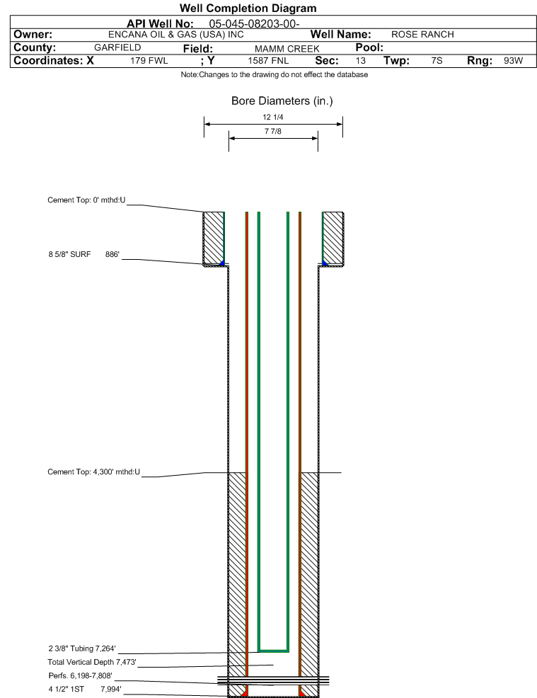 | | Perforation Data: | | Interval Top: | 6198 ft. | # Of Holes: | 80 | | Interval Bottom: | 7808 ft. | Hole Size: | |