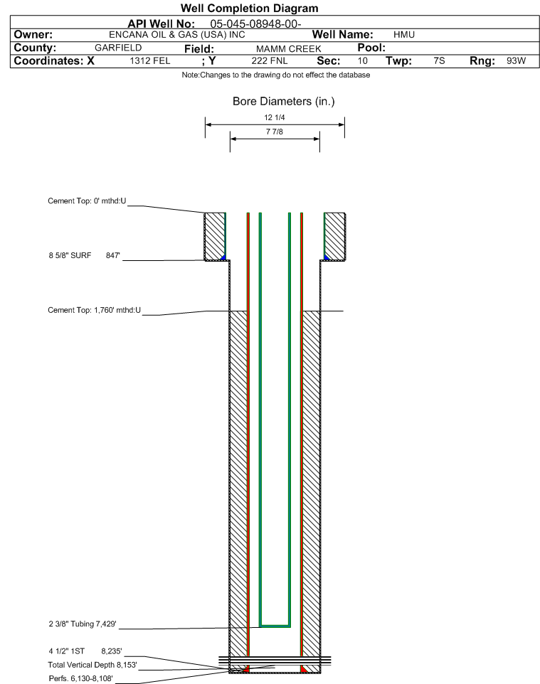 Cement:Sacks: 1120, Top: 1760 ft., Bottom: 8235 ft., Determination Method: CBL