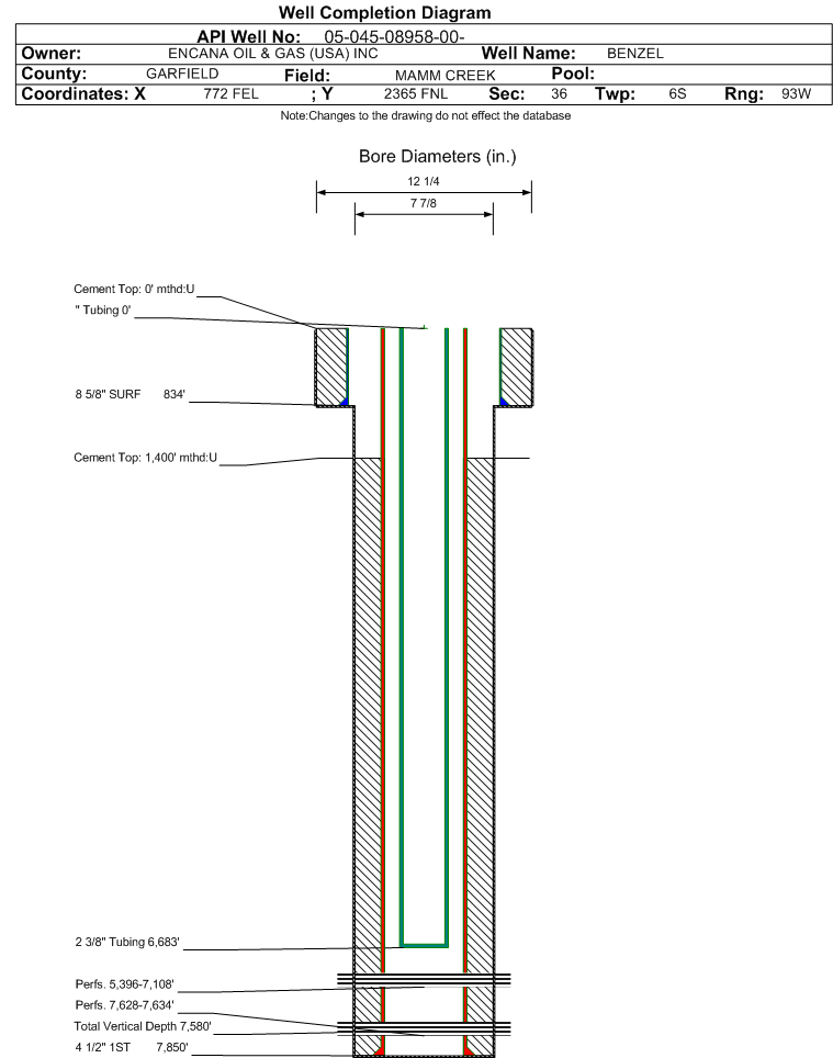 | | Perforation Data: | | Interval Top: | 5396 ft. | # Of Holes: | 90 | | Interval Bottom: | 7108 ft. | Hole Size: | |