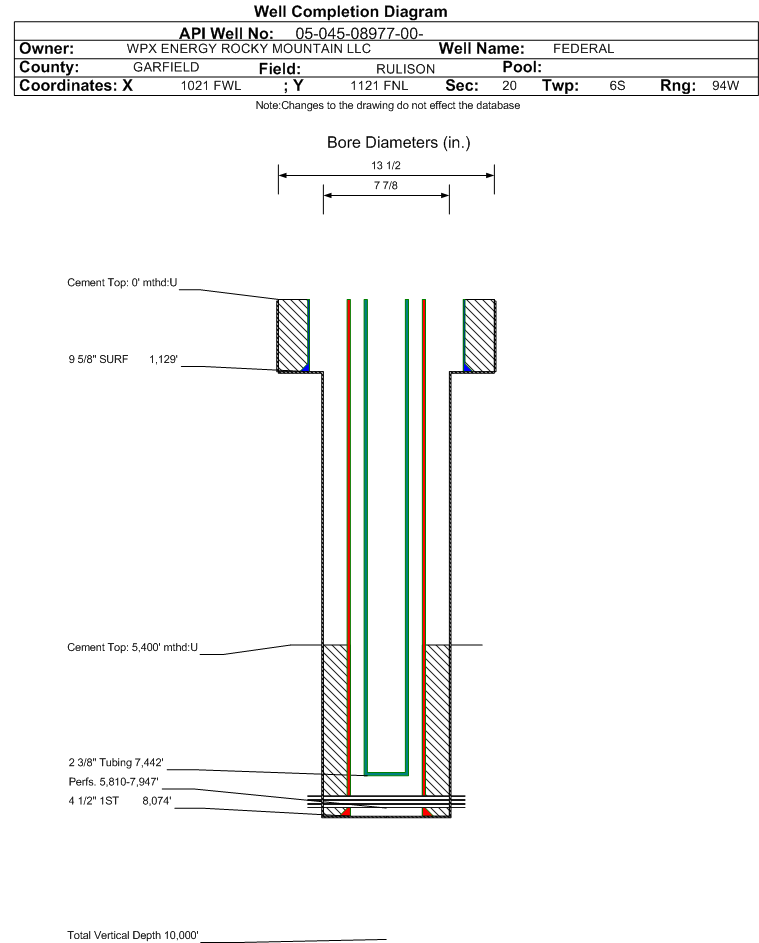 | | Perforation Data: | | Interval Top: | 5810 ft. | # Of Holes: | 130 | | Interval Bottom: | 7947 ft. | Hole Size: | |