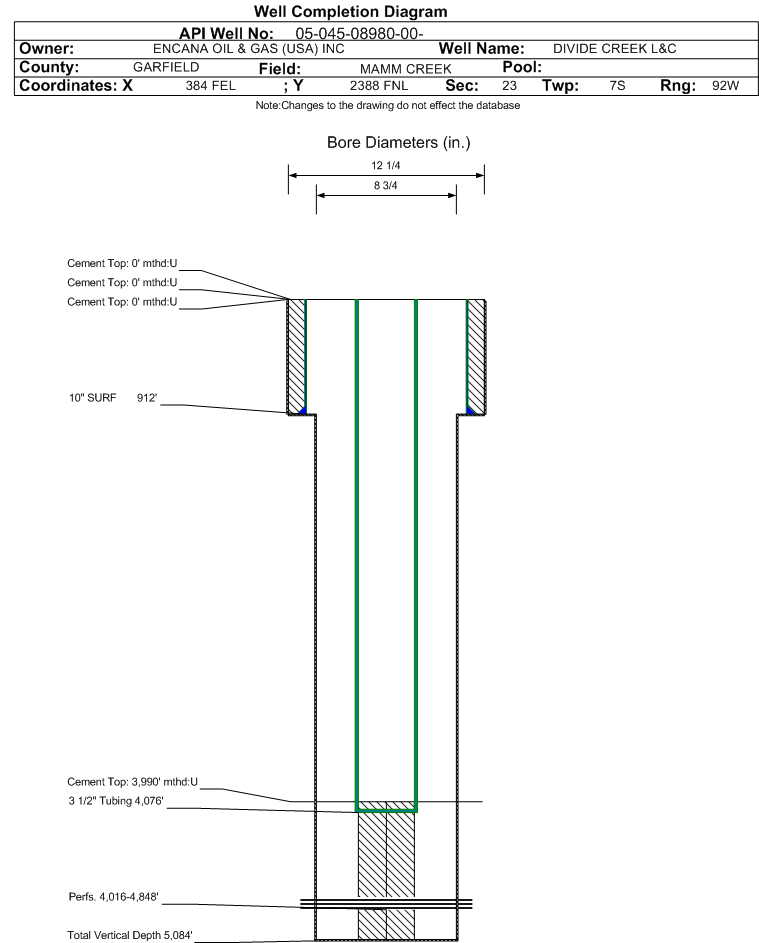 | | Perforation Data: | | Interval Top: | 4016 ft. | # Of Holes: | 252 | | Interval Bottom: | 4848 ft. | Hole Size: | |