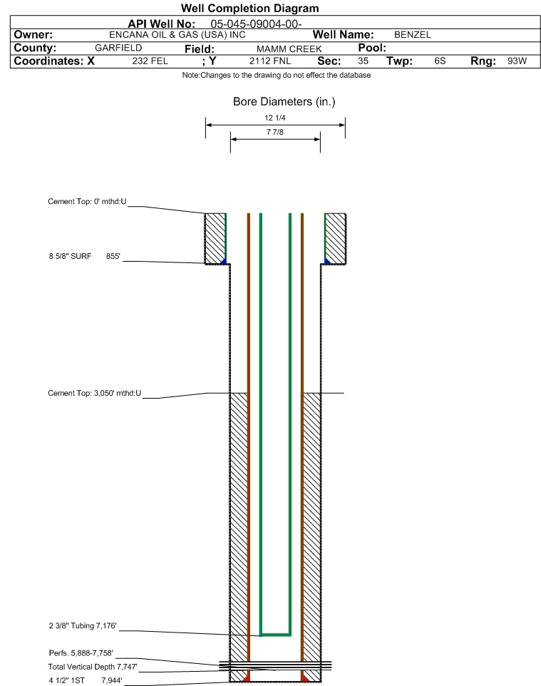 | | Perforation Data: | | Interval Top: | 5888 ft. | # Of Holes: | 94 | | Interval Bottom: | 7758 ft. | Hole Size: | |