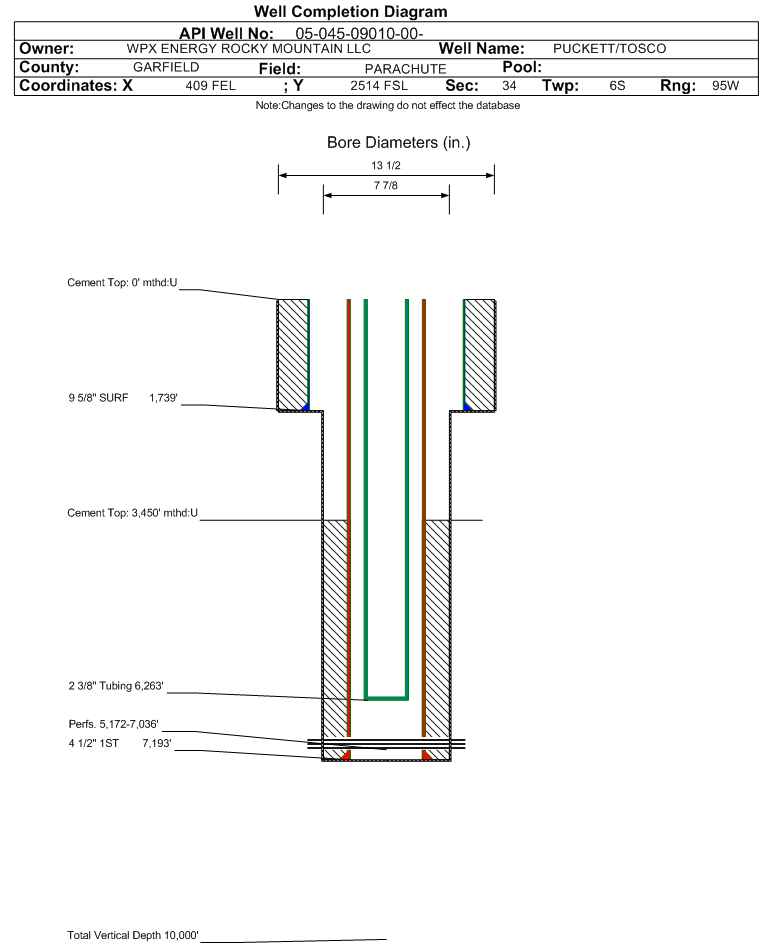 | | Perforation Data: | | Interval Top: | 5172 ft. | # Of Holes: | 85 | | Interval Bottom: | 7036 ft. | Hole Size: | |