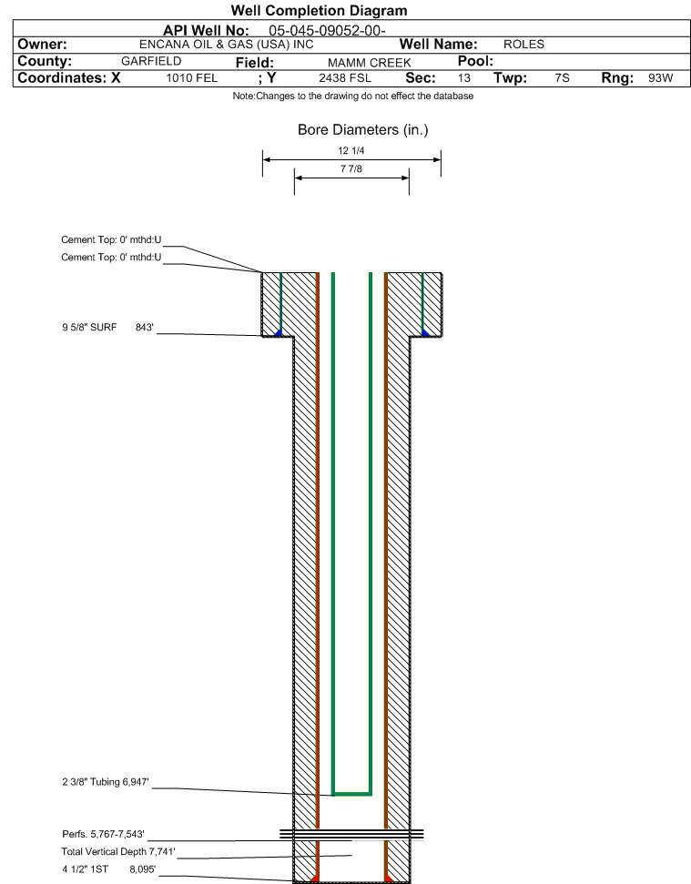 | | Perforation Data: | | Interval Top: | 5767 ft. | # Of Holes: | 104 | | Interval Bottom: | 7543 ft. | Hole Size: | |