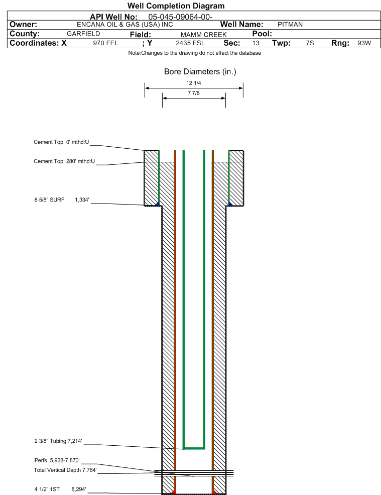 | | Perforation Data: | | Interval Top: | 5938 ft. | # Of Holes: | 106 | | Interval Bottom: | 7870 ft. | Hole Size: | |
