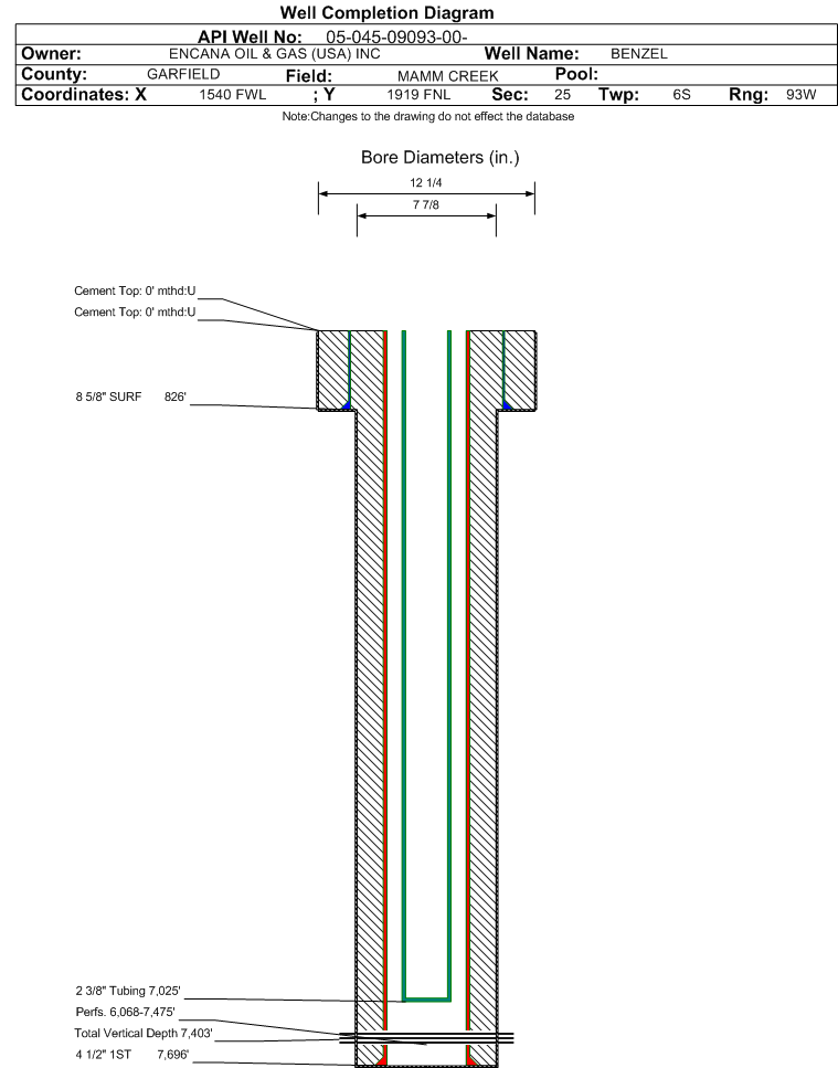 | | Perforation Data: | | Interval Top: | 6068 ft. | # Of Holes: | 102 | | Interval Bottom: | 7475 ft. | Hole Size: | |