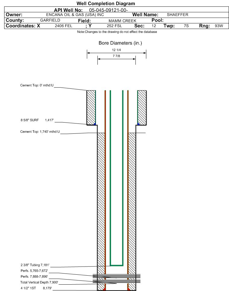 | | Perforation Data: | | Interval Top: | 7888 ft. | # Of Holes: | 16 | | Interval Bottom: | 7896 ft. | Hole Size: | 0.34 in. |
