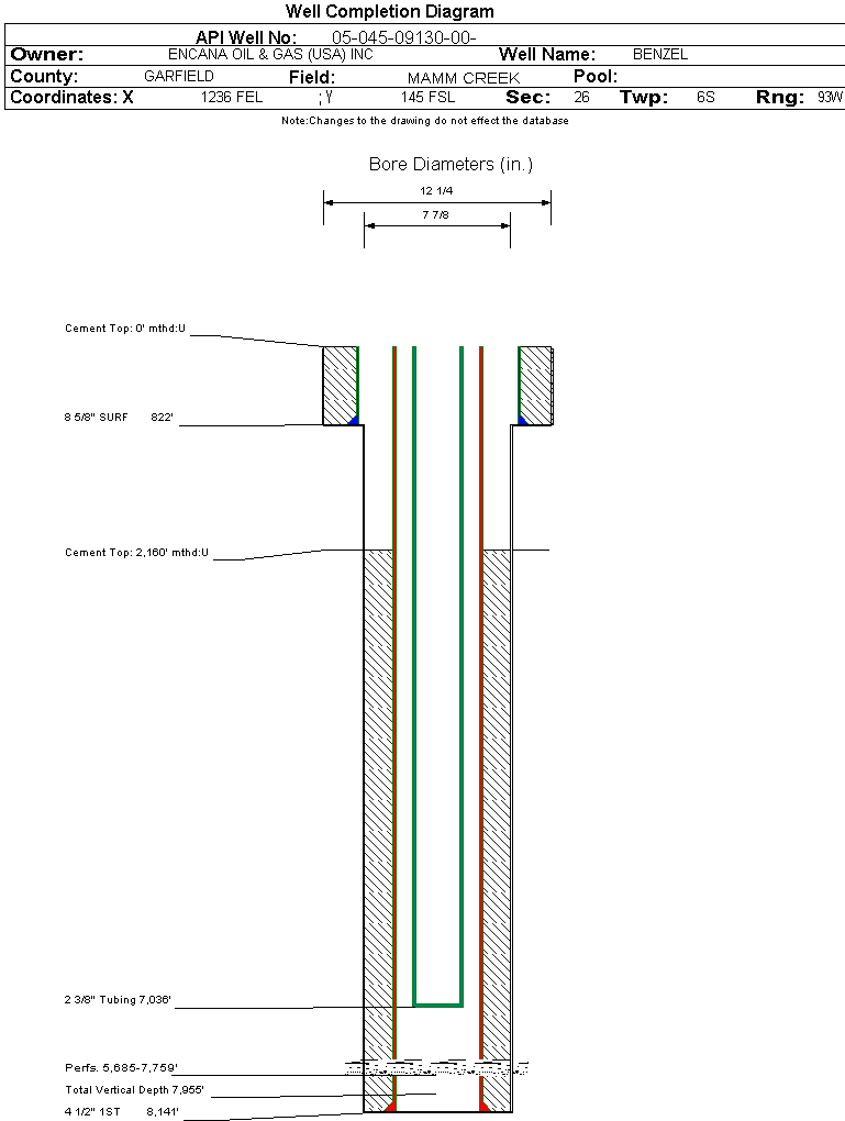 Formation WMFK Formation Classification: GW Status: SI - 5/1/2025 Interval Top: 5685 ft. Interval Bottom: 7759 ft.| Completed Information for Formation WILLIAMS FORK | | 1st Production Date: | N/A | Choke Size: | 0.375 in. | | Formation Name: | WILLIAMS FORK | Commingled: | No | | Production Method: | FLOWING | | Open Hole Completion: | No |
