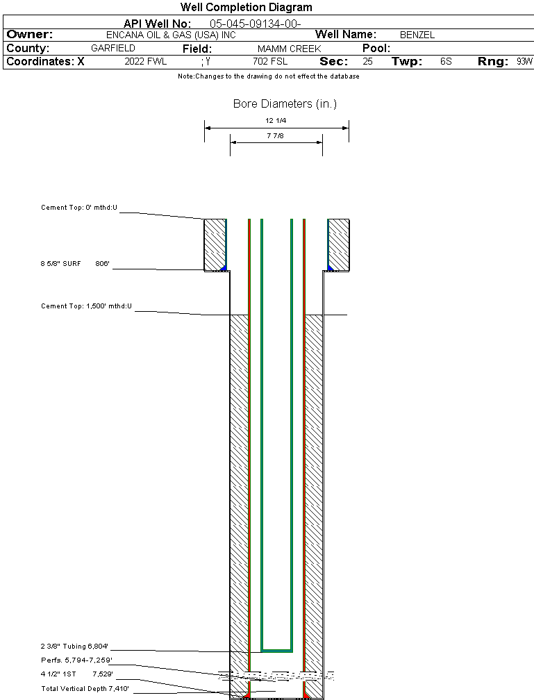 | | Perforation Data: | | Interval Top: | 5794 ft. | # Of Holes: | 108 | | Interval Bottom: | 7259 ft. | Hole Size: | 0.32 in. |