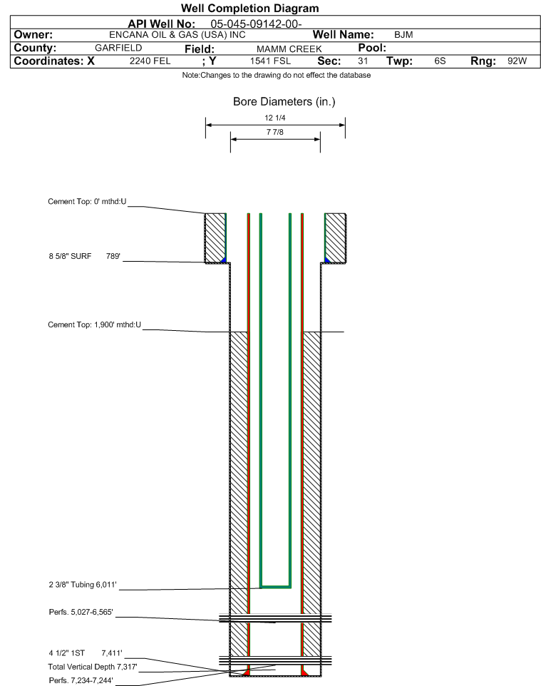 | | Perforation Data: | | Interval Top: | 5027 ft. | # Of Holes: | 70 | | Interval Bottom: | 6565 ft. | Hole Size: | 0.34 in. |
