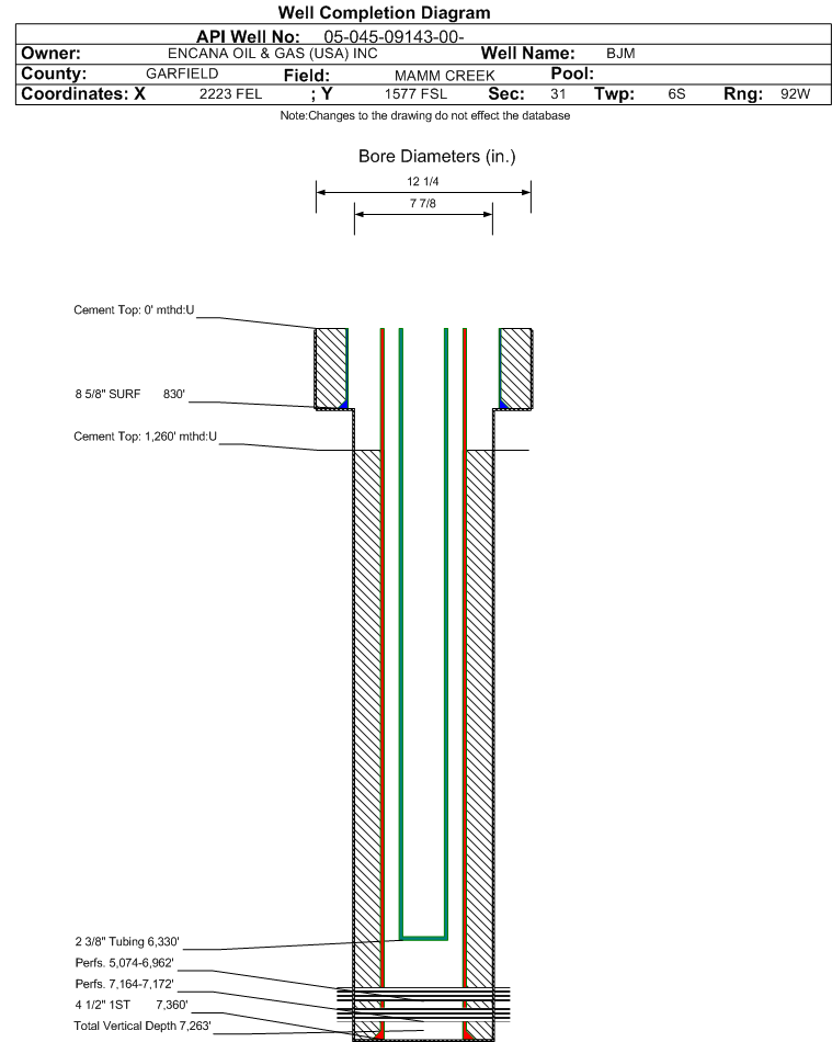 | | Perforation Data: | | Interval Top: | 5074 ft. | # Of Holes: | 96 | | Interval Bottom: | 6962 ft. | Hole Size: | 0.34 in. |
