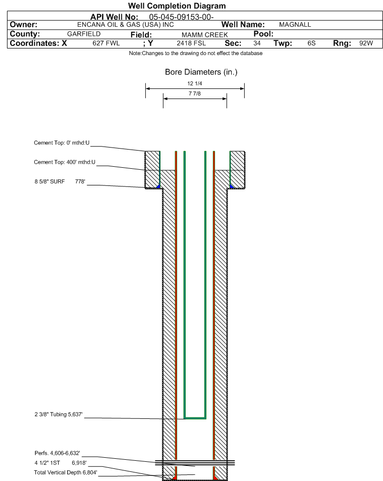 Cement:Sacks: 1540, Top: 400 ft., Bottom: 6918 ft., Determination Method: CBL
