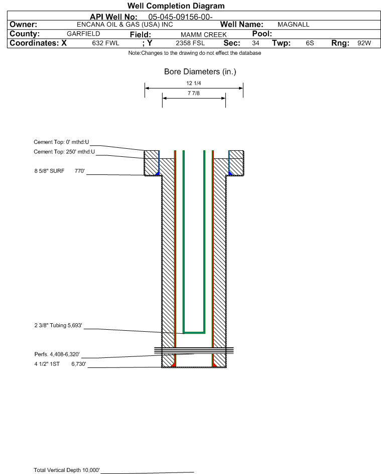 | | Perforation Data: | | Interval Top: | 4408 ft. | # Of Holes: | 102 | | Interval Bottom: | 6320 ft. | Hole Size: | |