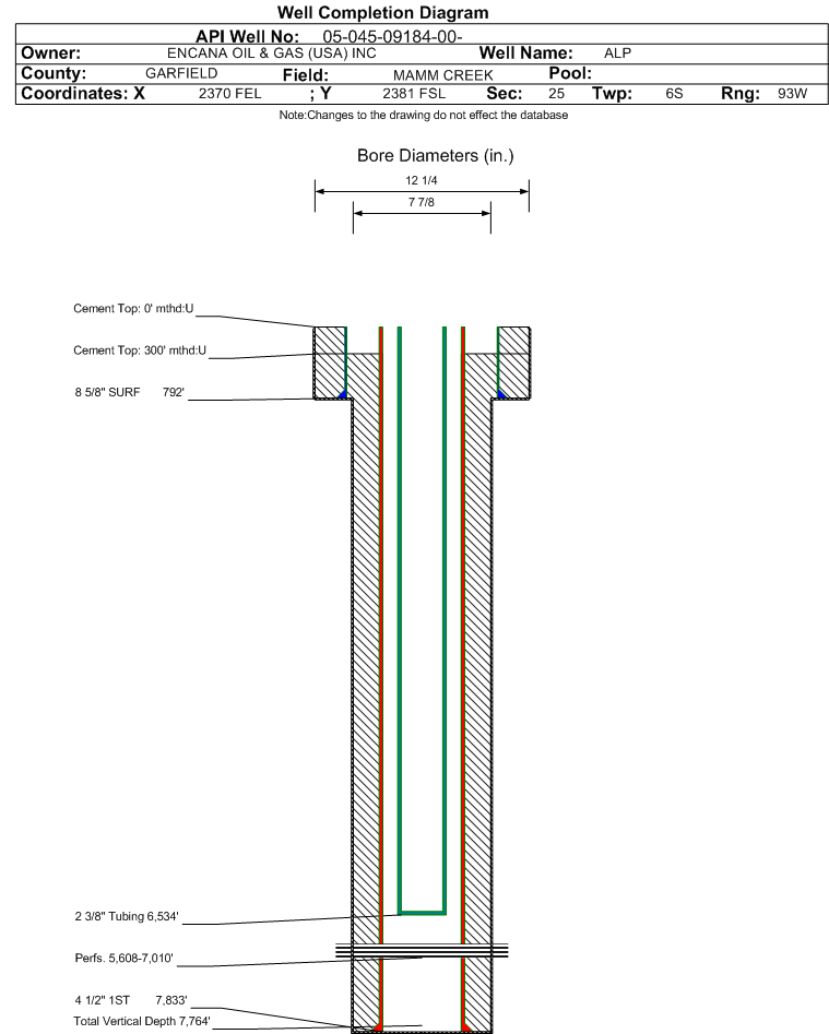 | | Perforation Data: | | Interval Top: | 5608 ft. | # Of Holes: | 92 | | Interval Bottom: | 7010 ft. | Hole Size: | |
