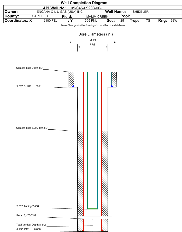 | | Perforation Data: | | Interval Top: | 6476 ft. | # Of Holes: | 76 | | Interval Bottom: | 7991 ft. | Hole Size: | |