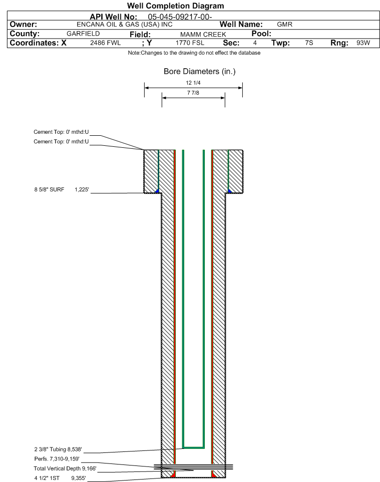 | | Perforation Data: | | Interval Top: | 7310 ft. | # Of Holes: | 130 | | Interval Bottom: | 9159 ft. | Hole Size: | |