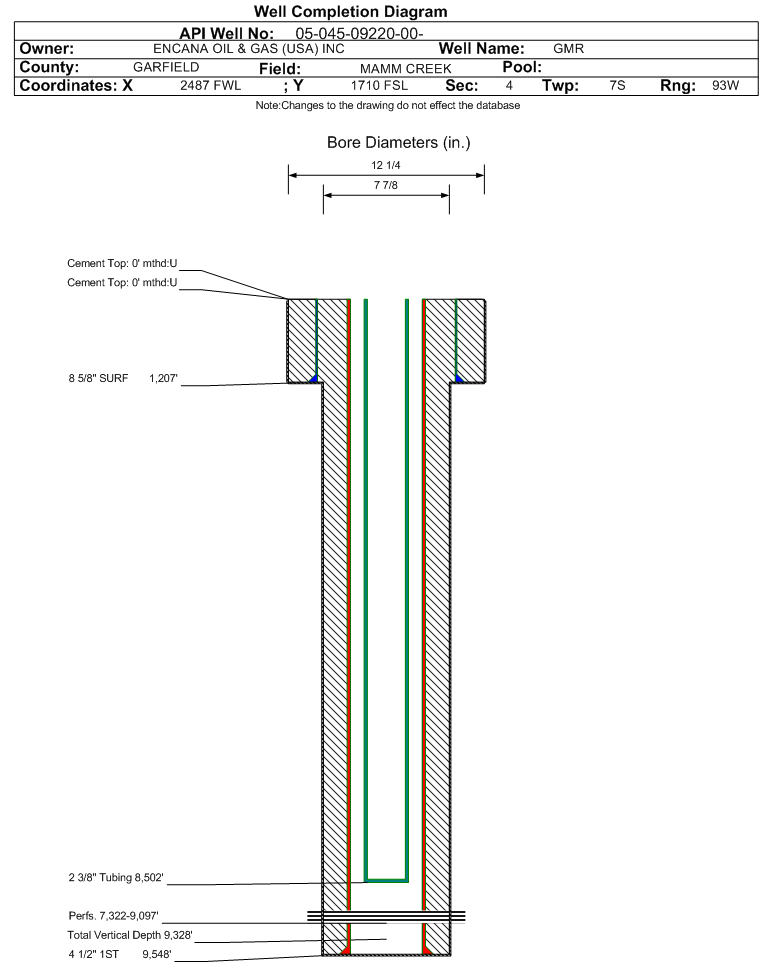 | | Perforation Data: | | Interval Top: | 7322 ft. | # Of Holes: | 92 | | Interval Bottom: | 9097 ft. | Hole Size: | |