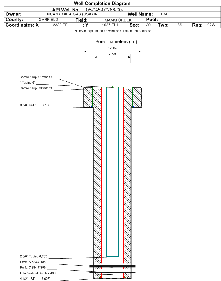 | | Perforation Data: | | Interval Top: | 5523 ft. | # Of Holes: | 106 | | Interval Bottom: | 7188 ft. | Hole Size: | |