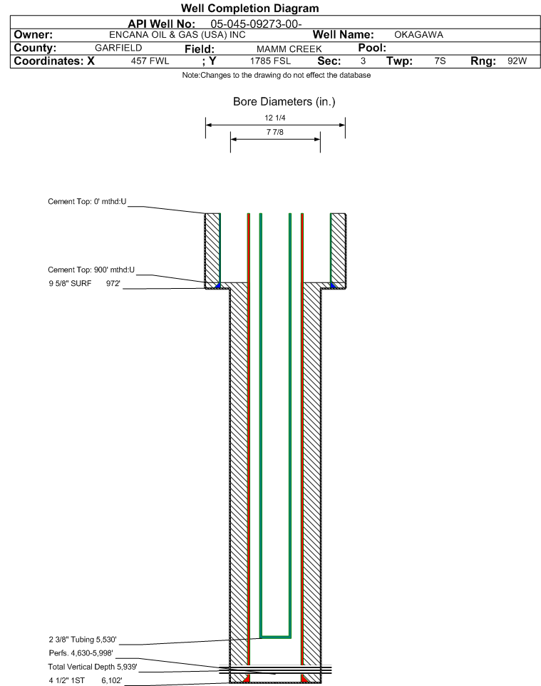 | | Perforation Data: | | Interval Top: | 4630 ft. | # Of Holes: | 74 | | Interval Bottom: | 5998 ft. | Hole Size: | |