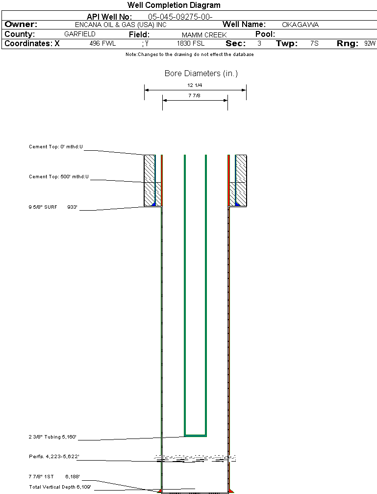 | | Perforation Data: | | Interval Top: | 4223 ft. | # Of Holes: | 80 | | Interval Bottom: | 5622 ft. | Hole Size: | 0.41 in. |