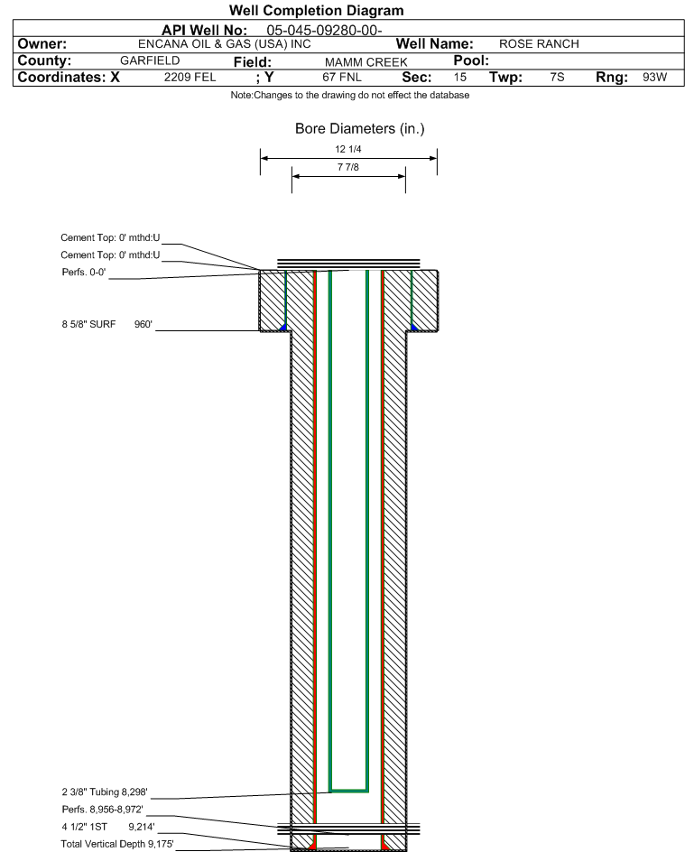 | | Perforation Data: | | Interval Top: | 8956 ft. | # Of Holes: | 8 | | Interval Bottom: | 8972 ft. | Hole Size: | |