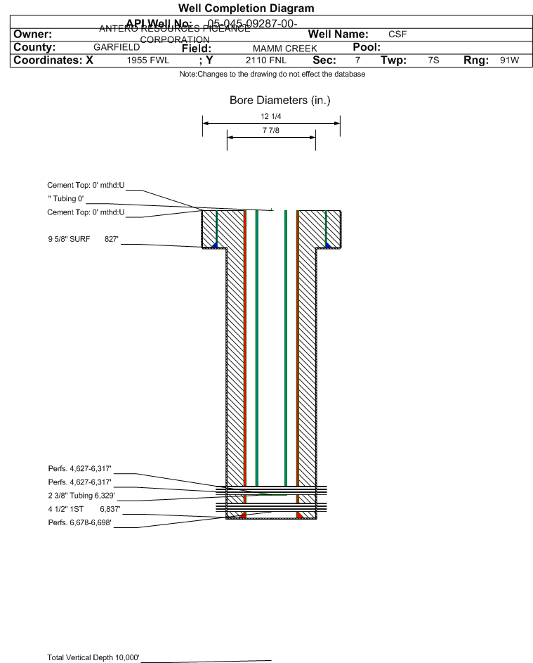 | | Perforation Data: | | Interval Top: | 4627 ft. | # Of Holes: | 221 | | Interval Bottom: | 6317 ft. | Hole Size: | |