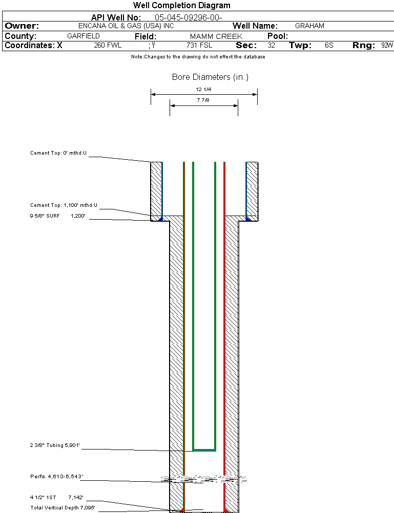 | | Perforation Data: | | Interval Top: | 4610 ft. | # Of Holes: | 88 | | Interval Bottom: | 6543 ft. | Hole Size: | 0.32 in. |