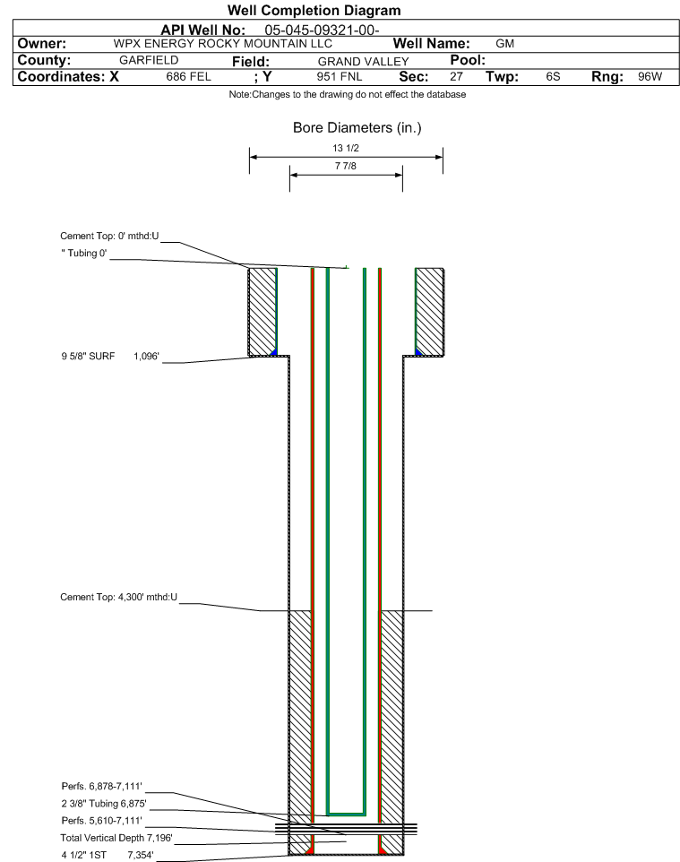 | | Perforation Data: | | Interval Top: | 5610 ft. | # Of Holes: | 65 | | Interval Bottom: | 7111 ft. | Hole Size: | 0.43 in. |