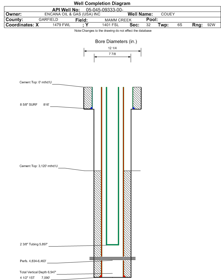 | | Perforation Data: | | Interval Top: | 4834 ft. | # Of Holes: | 84 | | Interval Bottom: | 6463 ft. | Hole Size: | |