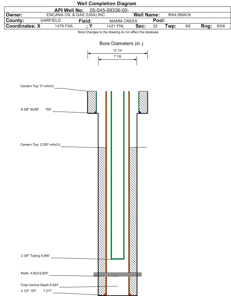| | Perforation Data: | | Interval Top: | 4823 ft. | # Of Holes: | 100 | | Interval Bottom: | 6600 ft. | Hole Size: | 0.34 in. |