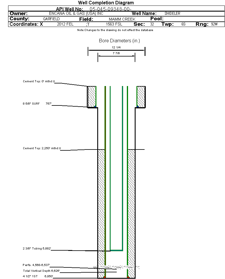 | | Perforation Data: | | Interval Top: | 4568 ft. | # Of Holes: | 116 | | Interval Bottom: | 6537 ft. | Hole Size: | 0.38 in. |