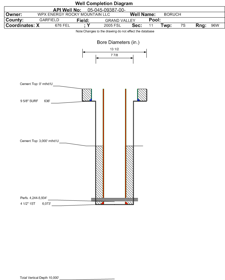 | | Perforation Data: | | Interval Top: | 4244 ft. | # Of Holes: | 70 | | Interval Bottom: | 5934 ft. | Hole Size: | 0.43 in. |