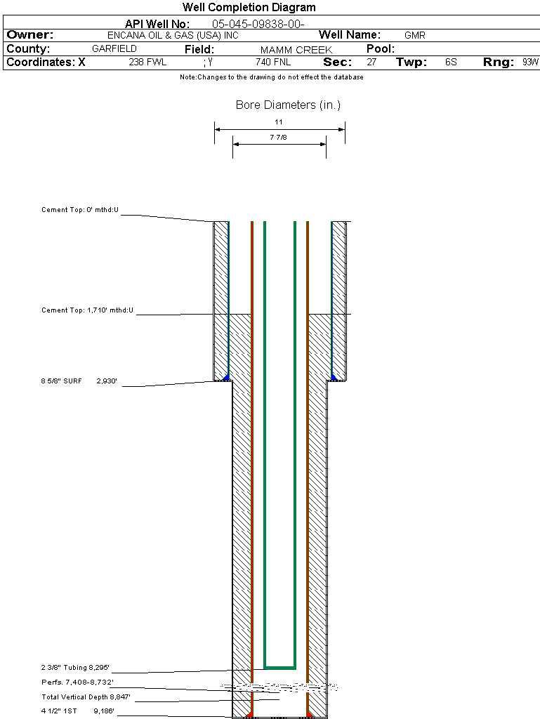 | | Perforation Data: | | Interval Top: | 7408 ft. | # Of Holes: | 98 | | Interval Bottom: | 8732 ft. | Hole Size: | 0.34 in. |