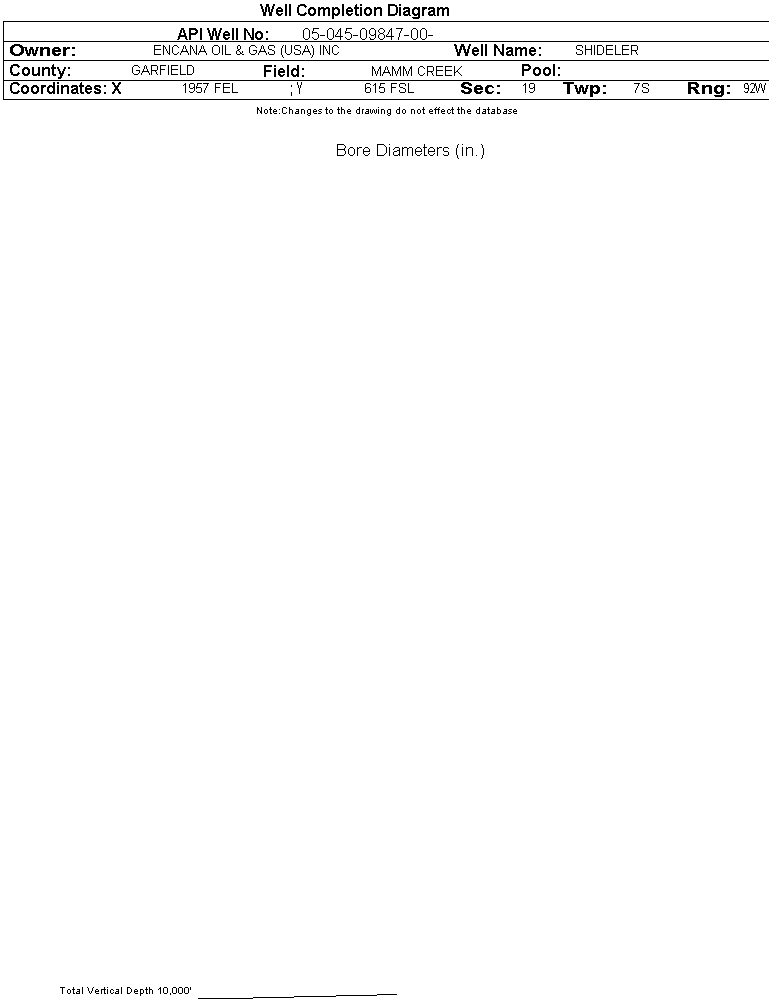 | Wellbore Completed | | Completion Date: | N/A | | Spud Date: | 3/4/2004 | Spud Date Is: | PLANNED | | Measured TD: | | Measured PB depth: | | | True Vertical TD: | | True Vertical PB depth: | | | No formation data to display. |