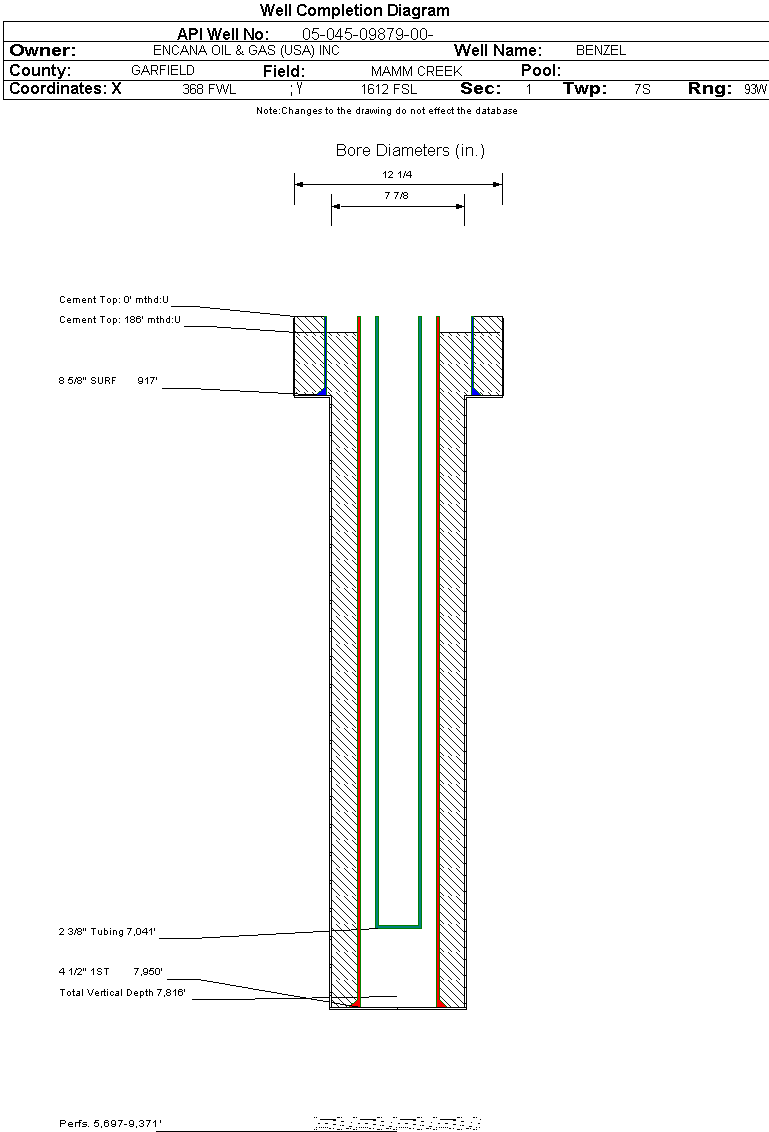 | | Perforation Data: | | Interval Top: | 5697 ft. | # Of Holes: | 148 | | Interval Bottom: | 9371 ft. | Hole Size: | 0.41 in. |