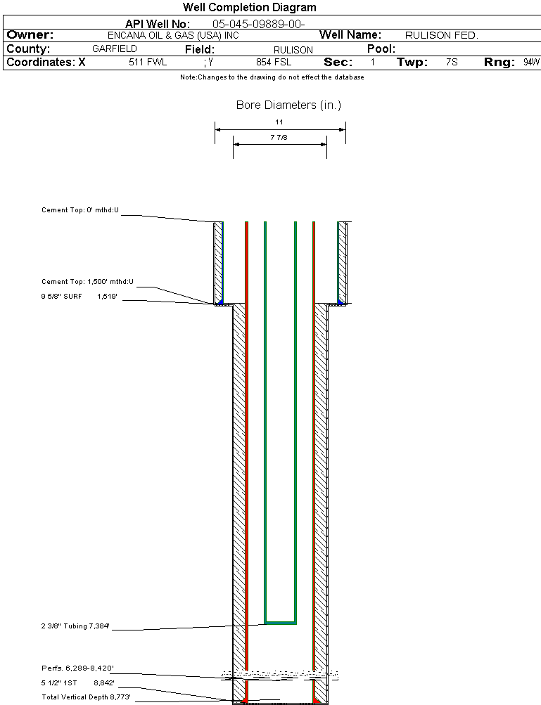 | | Perforation Data: | | Interval Top: | 6289 ft. | # Of Holes: | 138 | | Interval Bottom: | 8420 ft. | Hole Size: | 0.36 in. |