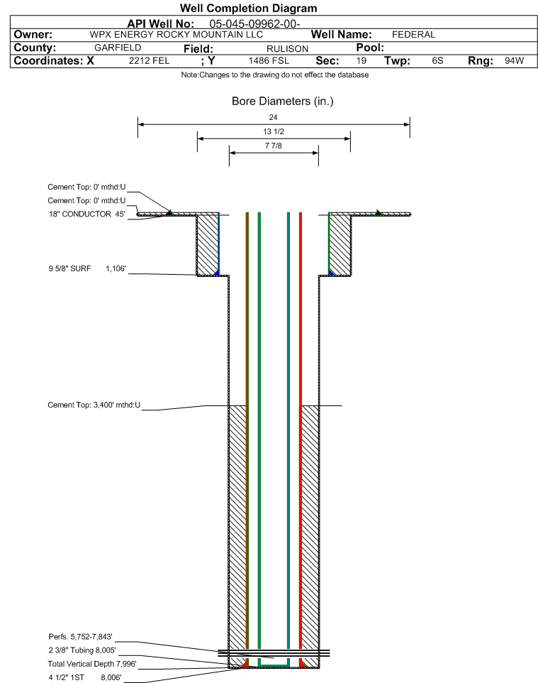 | | Perforation Data: | | Interval Top: | 5752 ft. | # Of Holes: | 91 | | Interval Bottom: | 7843 ft. | Hole Size: | 0.44 in. |